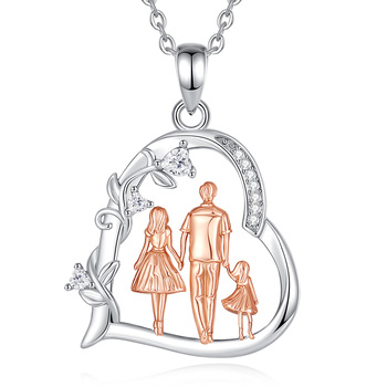عيد الأم هدية 925 الاسترليني الفضة منقوش القلب الأم و الأب الأسرة قلادة